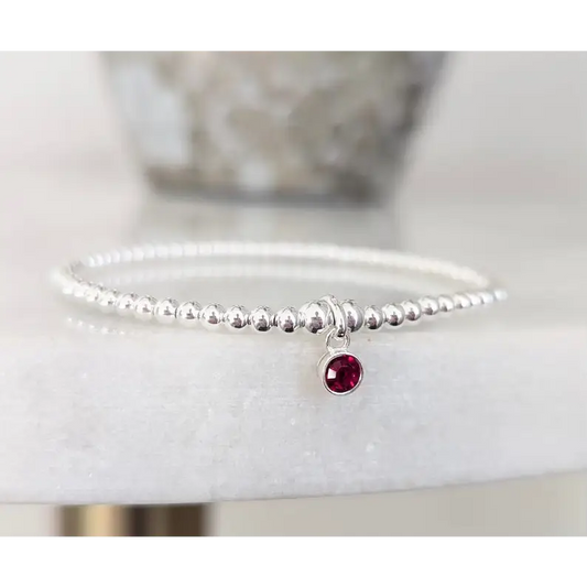 Discover the perfect piece of sterling silver birthstone jewellery to celebrate a special birthday or cherished memory. Our collection is handcrafted with love in the UK and designed to be as unique as you are. Every piece is thoughtfully designed to feature a sparkling birthstone gemstone, securely encased in a polished setting, ready to be gifted to a loved one or worn as a personal keepsake. We offer a stunning range of styles, from dainty beaded bracelets to elegant birthstone necklaces, so you can find a piece that truly speaks to your heart.