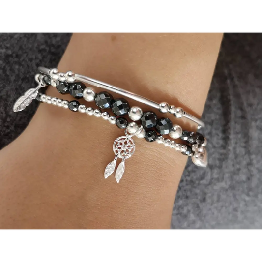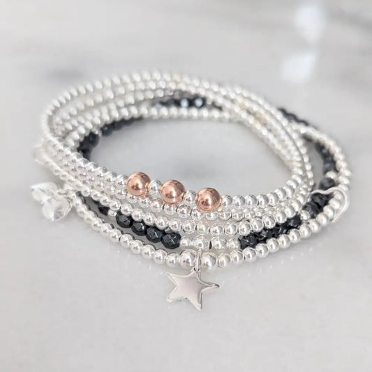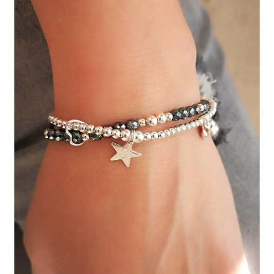 Personalised Sterling Silver and Hematite Five Stack Bracelet Set