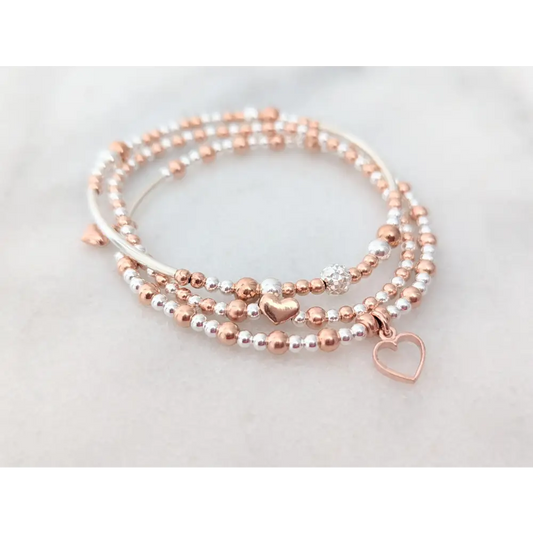 Sterling Silver and Rose Gold Vermeil Beaded Bracelet Set