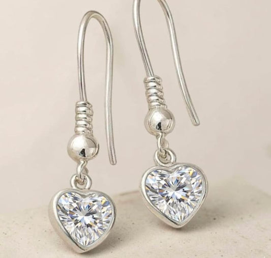 Sterling Silver Heart Drop Earrings