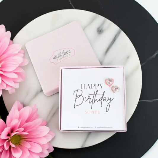 Happy Birthday' Pink Crystal Heart Earrings