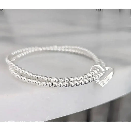 Sterling Silver Double Stretch Beaded Heart Bracelet
