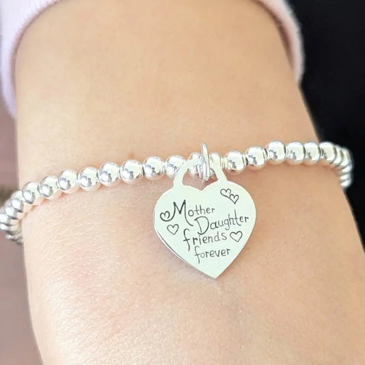 Sterling Silver Mother Daughter Beaded Stretch Bracelet