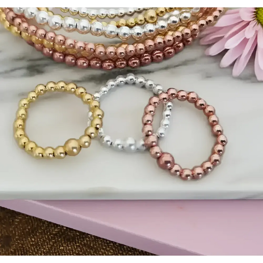 Sterling Silver, Gold or Rose Gold Beaded Stretch Ring
