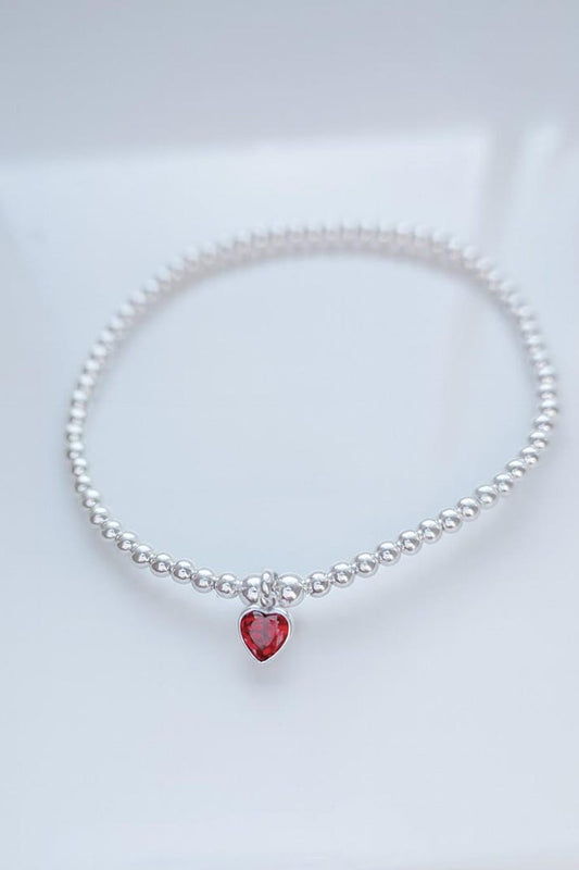 Sterling Silver January Heart Birthstone Bracelet (Garnet)