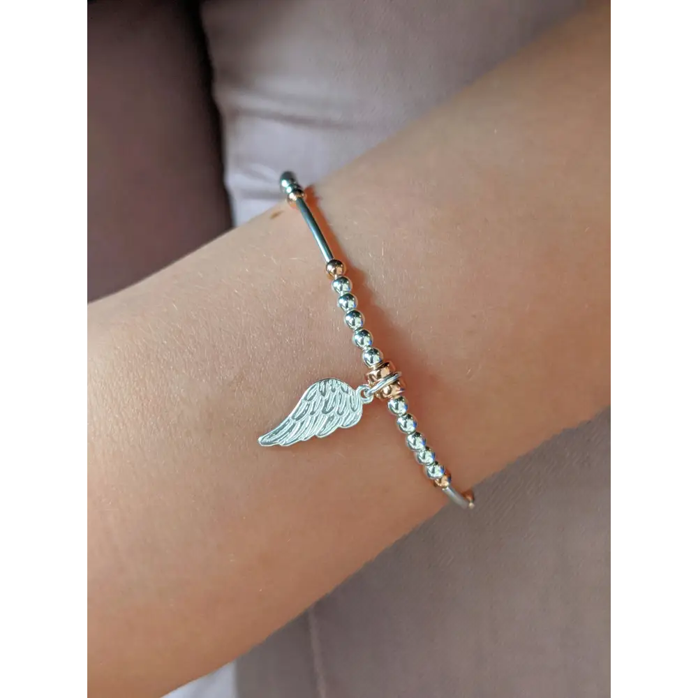 A stunning beaded bracelet finished with a beautiful angel wing.