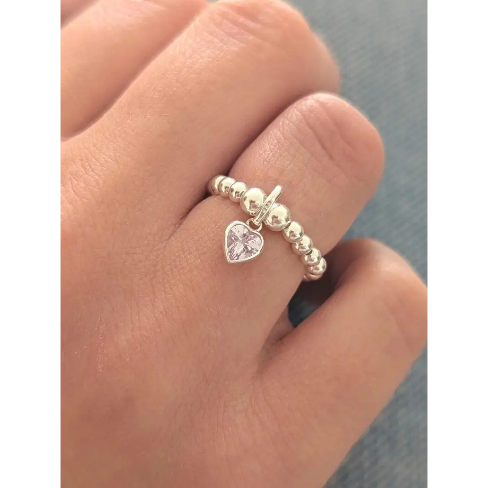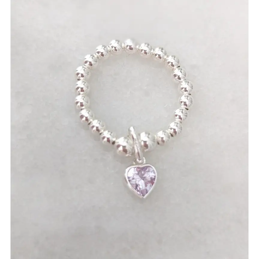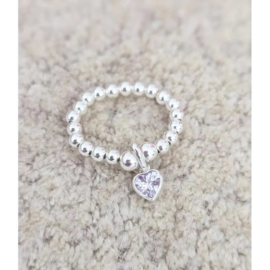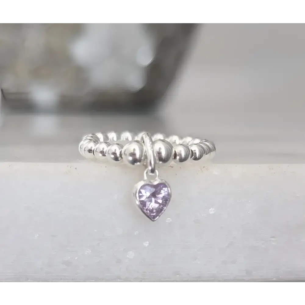 Crafted with care, each stretch ring features smooth, 3mm sterling silver beads strung together to create a comfortable and flexible fit. The centerpiece is a charming, heart-shaped, lilac cubic zirconia, measuring 5mm and also set in sterling silver. This beautiful stone adds a touch of color and sparkle, reminiscent of the June birthstone ring, making it a thoughtful gift for yourself or a loved one.