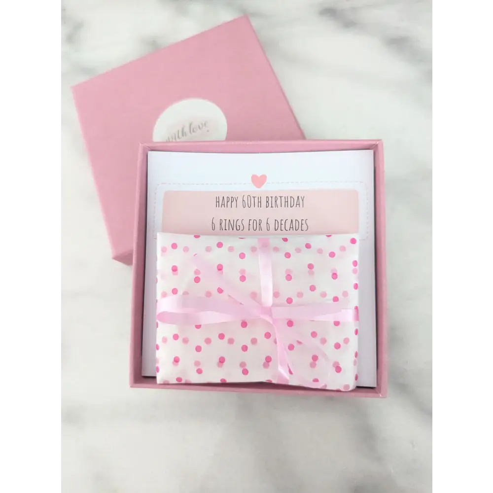 Your bracelet will arrive beautifully gift boxed, ready to be presented to that special someone. Inside, you'll find a card explaining the significance of the rings, making it a truly thoughtful gift. You will receive the standard `3 rings for 3 decades' etc card, which eloquently conveys the bracelet's meaning. For an extra personal touch, you can opt for a personalised message card.