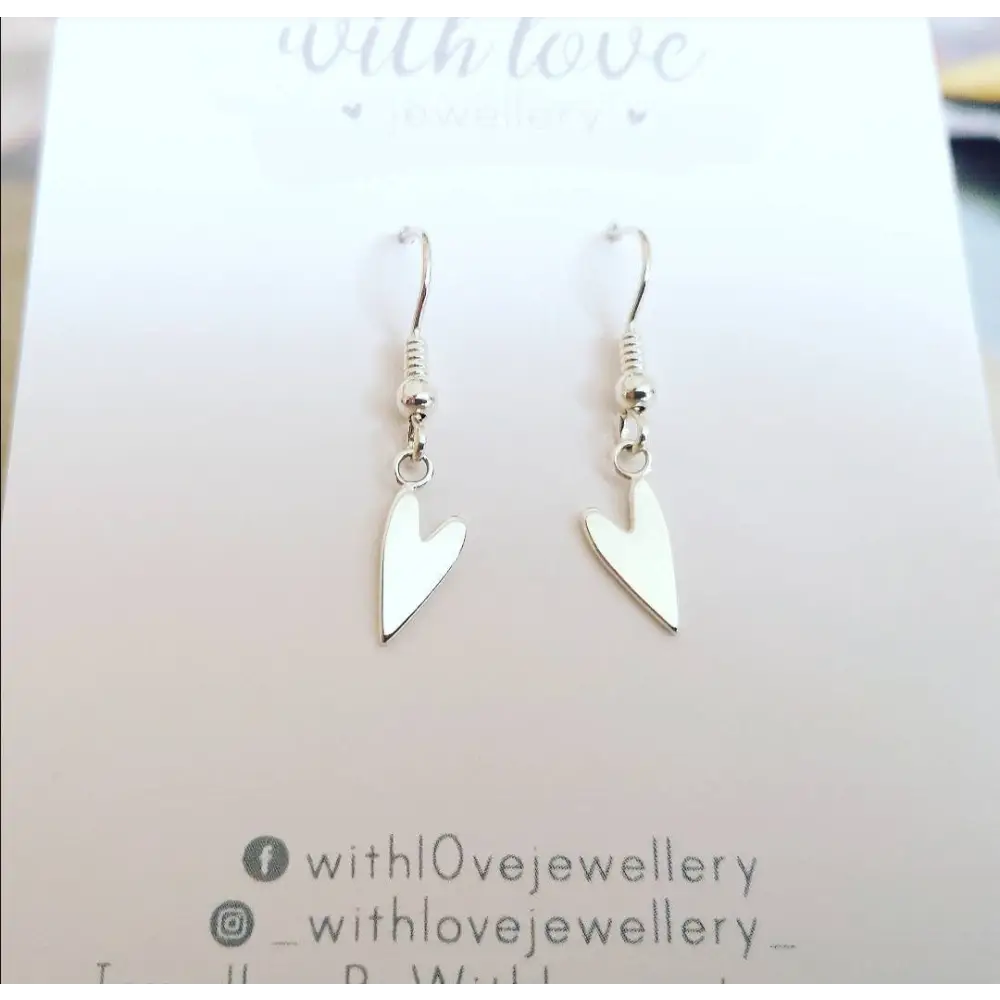 These delicate heart earrings measure approximately 32mm in total length, extending gracefully from the top of the ear hook to the base of the charm. The charm itself measures 6x12mm, offering a subtle yet eye-catching sparkle. For added security and peace of mind, each pair of silver heart drop earrings comes with small, discreet rubber backs to prevent slippage.