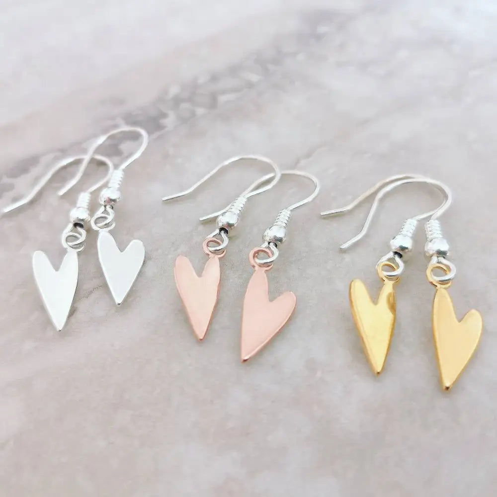 Choose from elegant silver, warm gold vermeil, or romantic rose gold vermeil hearts to perfectly complement your style. These beautiful heart earrings are a versatile addition to any jewelry collection.