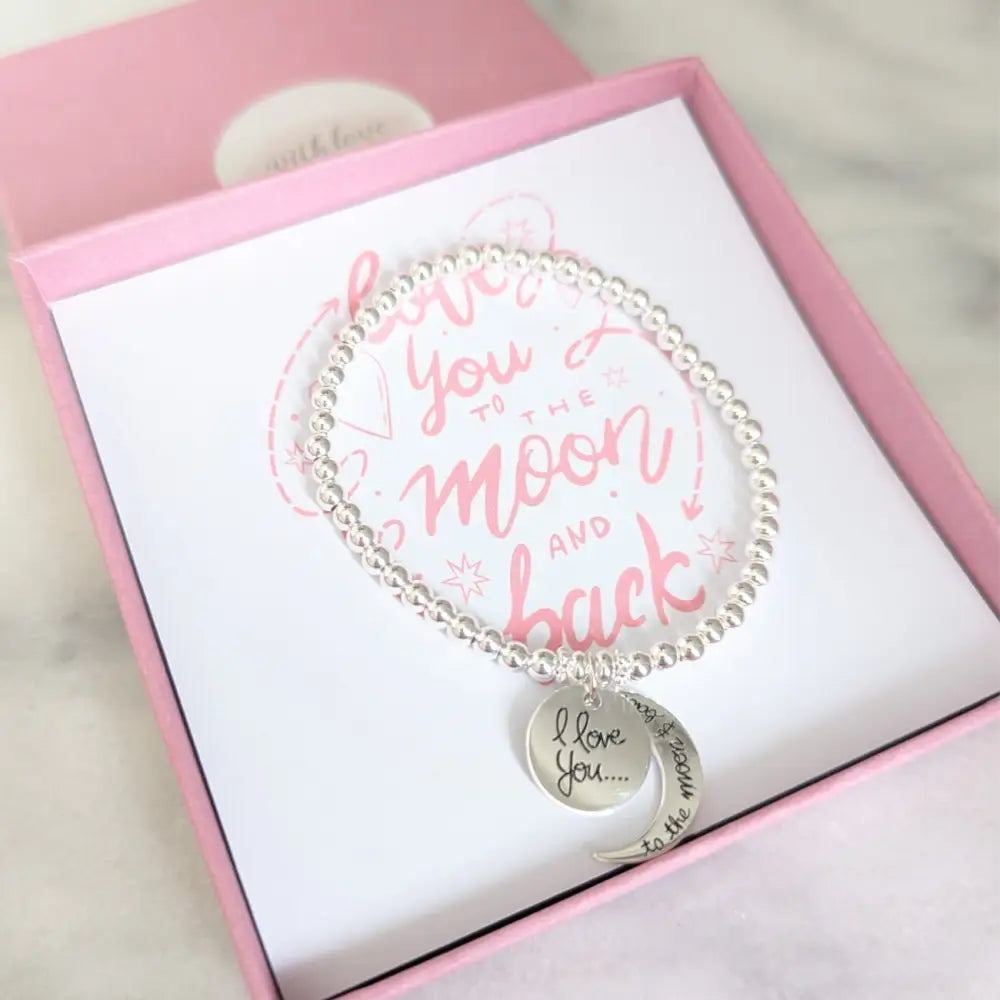 Your 'I Love You To The Moon' sterling silver charm bracelet will arrive beautifully gift boxed, ready to present to that special person, making it a truly memorable and effortless gift-giving experience.