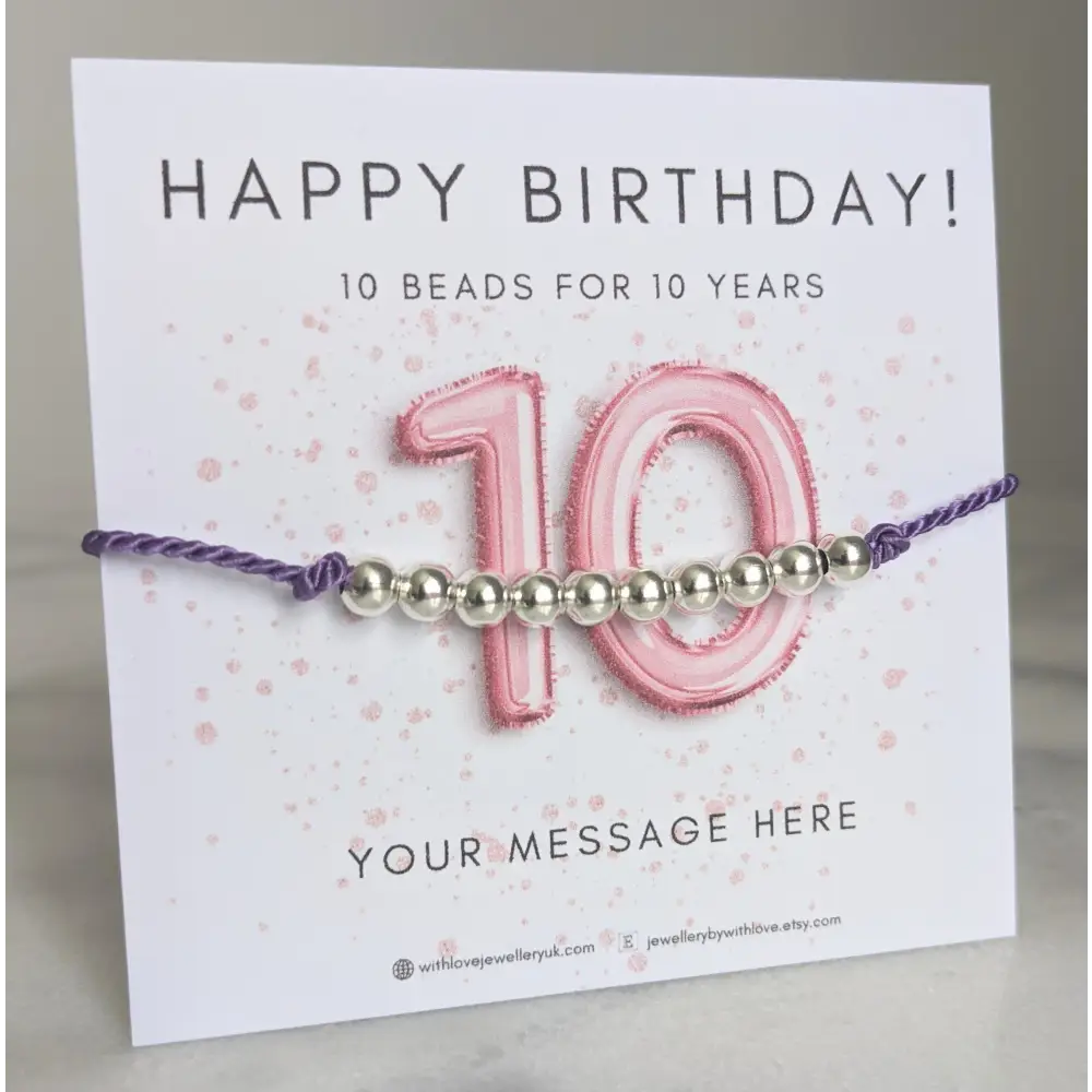 🌟 To create your own bracelet simply chose your preferred cord colour and the number of beads you require. You can also chose to have a personalised message printed on the card. If you chose not to opt for a personalised message, the standard '6 beads for 6 years' etc standard card will be sent. Please leave a note when placing your order with your personalised message.
