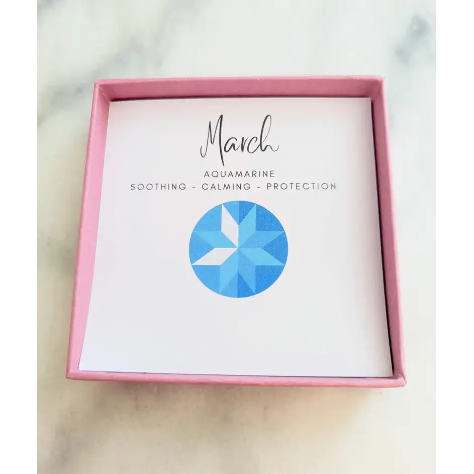 Aquamarine, the serene blue birthstone for March, is believed to bring calmness and clarity to its wearer.