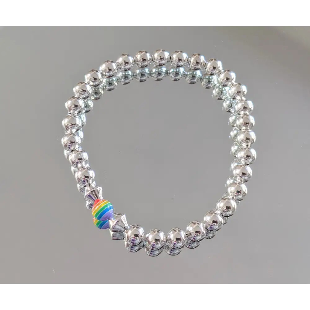 This rainbow beaded bracelet is made using 6mm rainbow bead and 6mm silver plated beads.