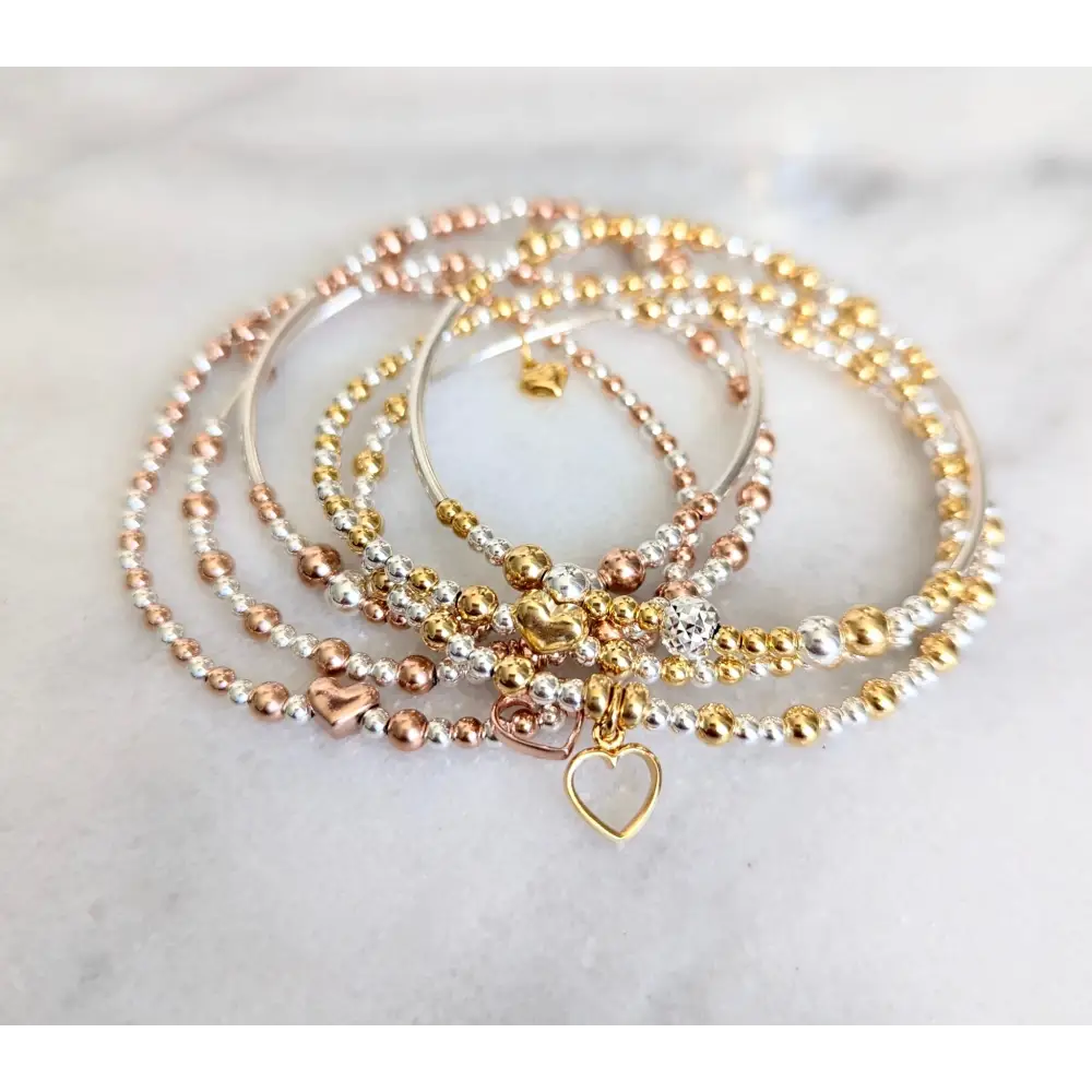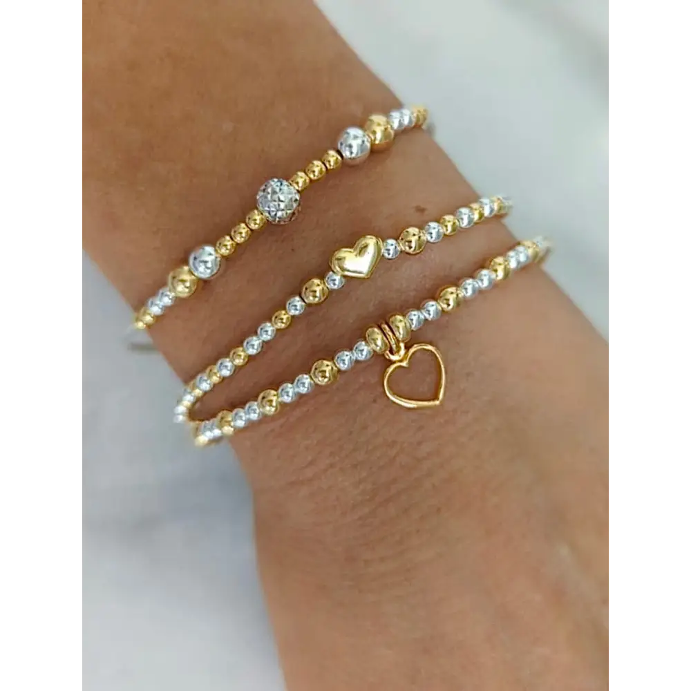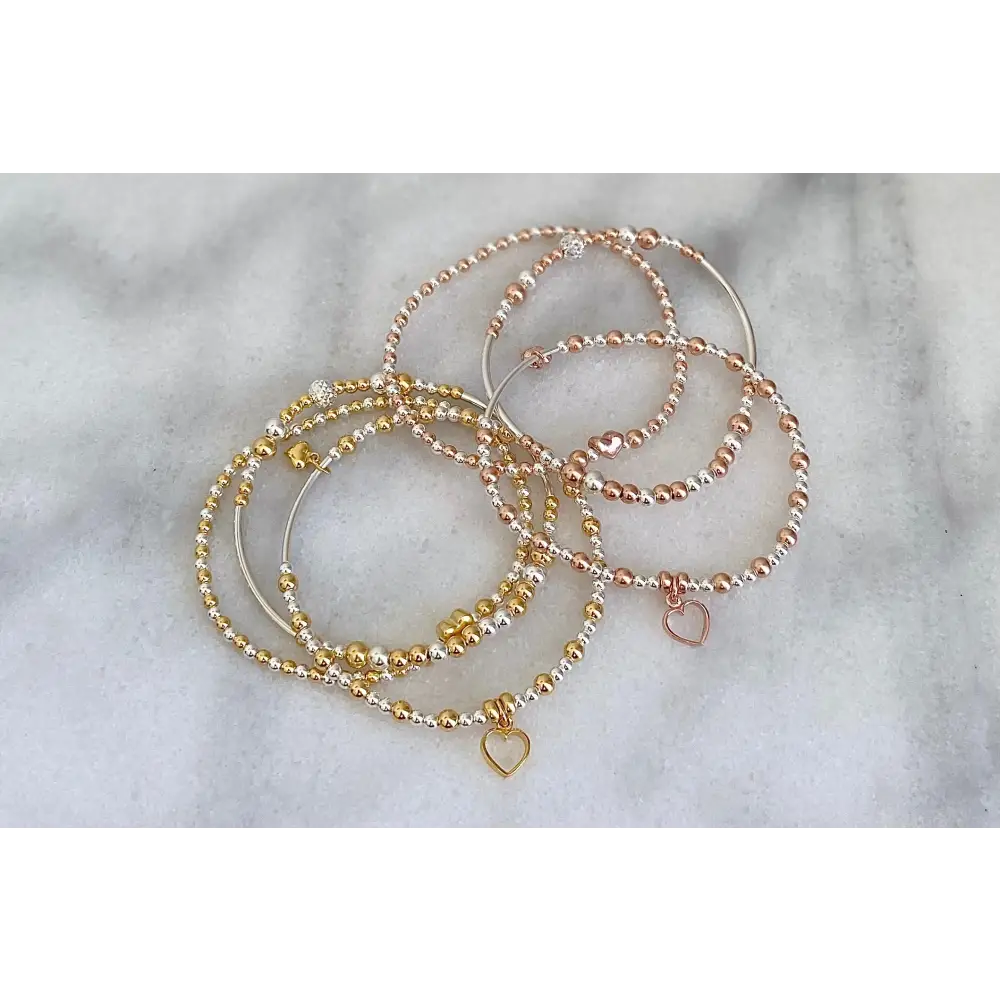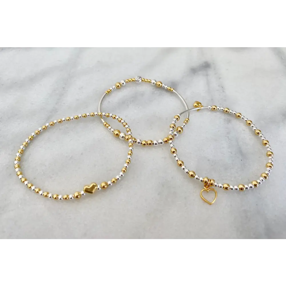 A beautiful set of three, handmade, 3mm beaded, stretch bracelets, all mixed sterling silver & gold vermeil.