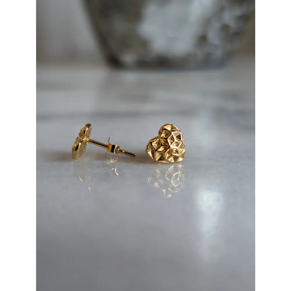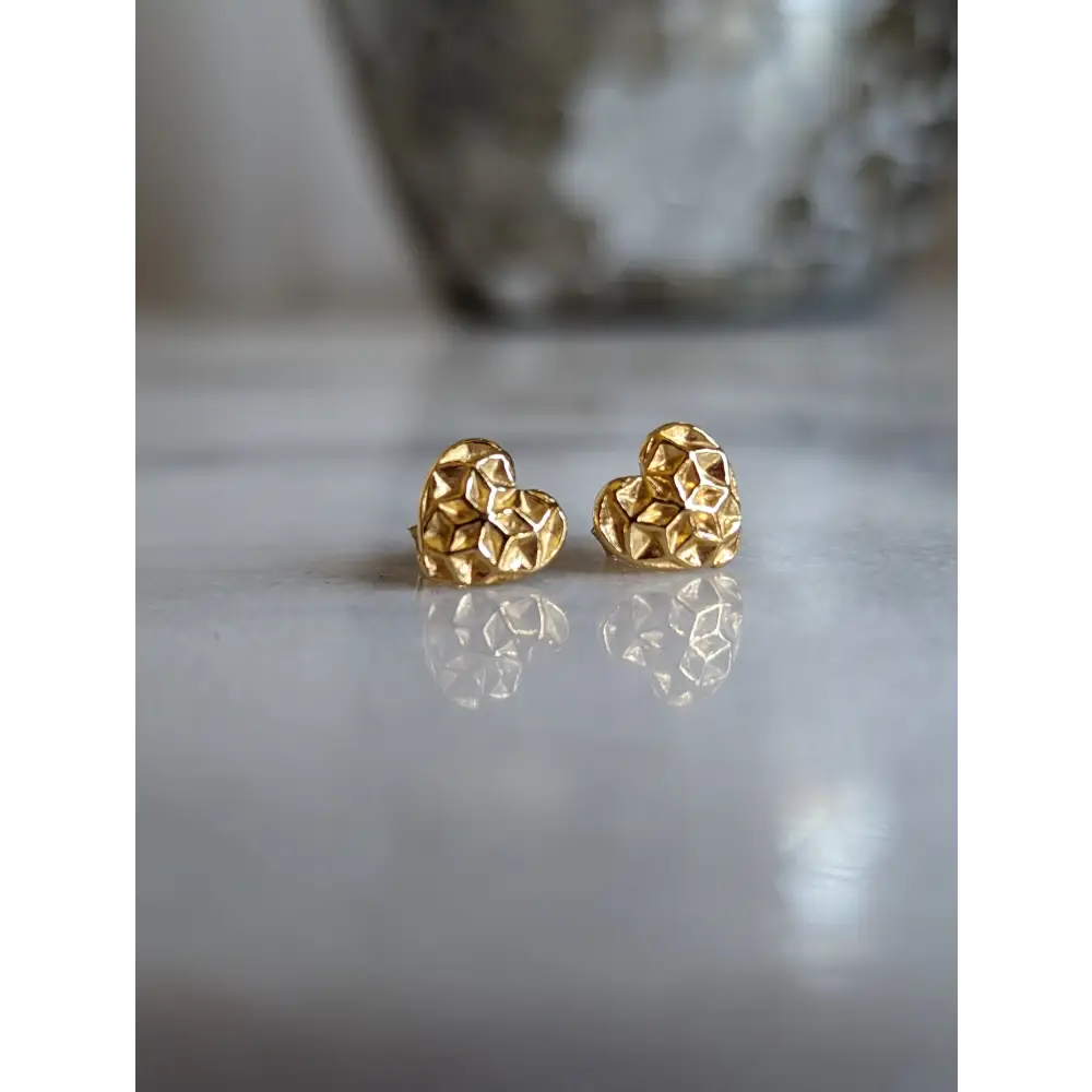 Elegant Sterling Silver Gold Vermeil Style Heart Stud Earrings.