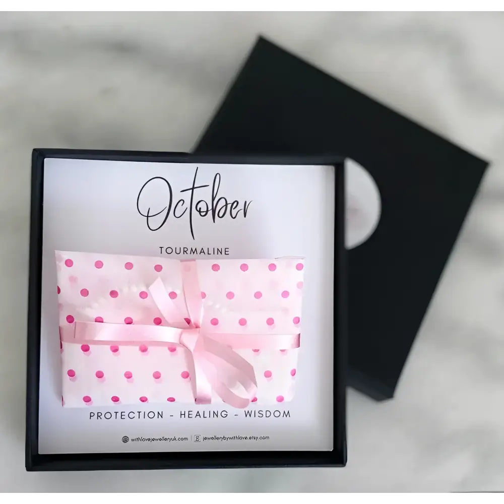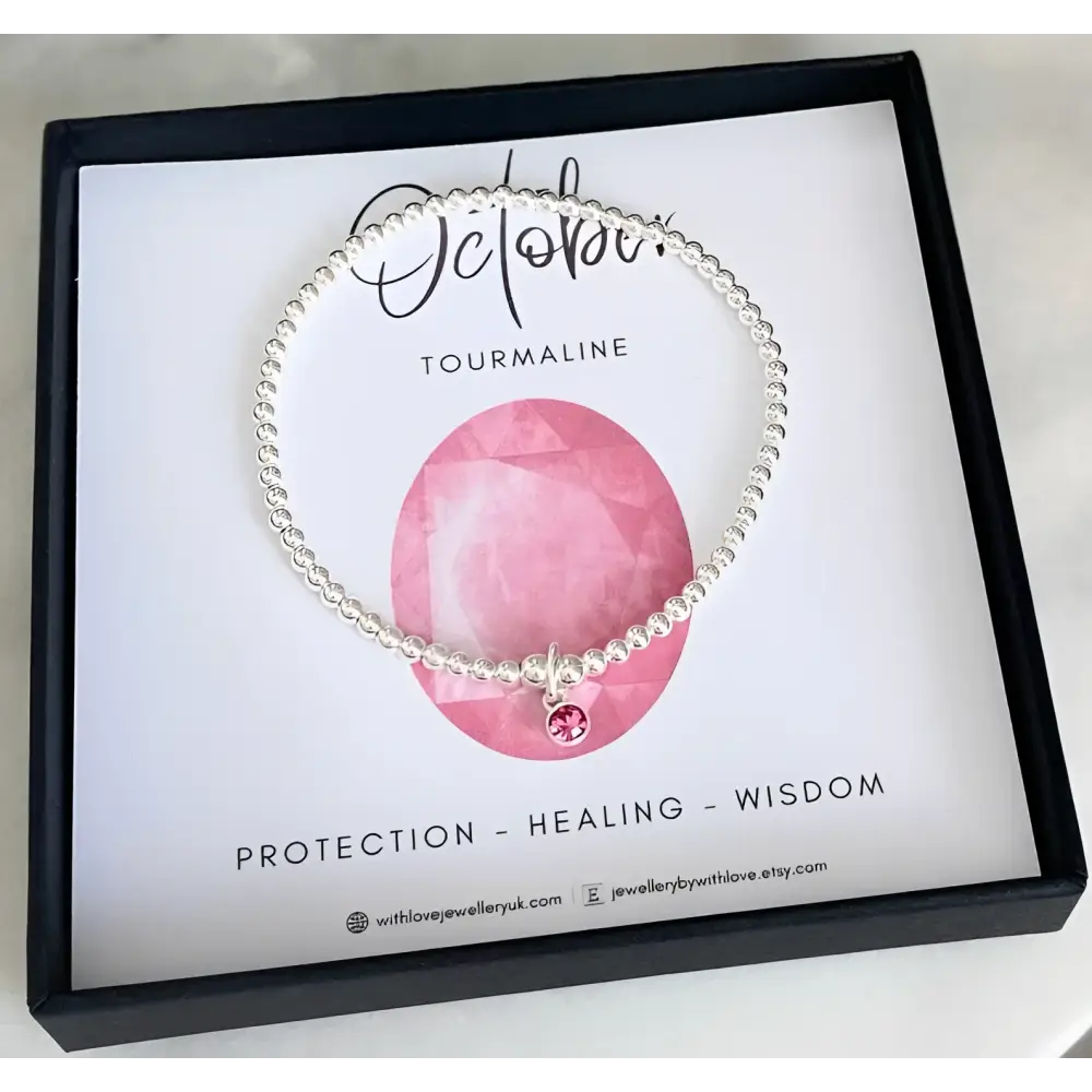 Your new sterling silver October birthday bracelet will arrive beautifully gift wrapped and presented in a gift box, ready for giving. This makes it an ideal present for that special someone with an October birthday. If you'd like to add a personal touch, please leave a note with your order, and we'll gladly include a personalized message on the card inside the gift box. Celebrate their special day with this elegant sterling silver October birthstone gift.