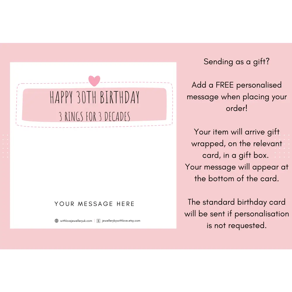 3 rings for 3 decades, a subtle piece of jewellery for a 30th birthday.