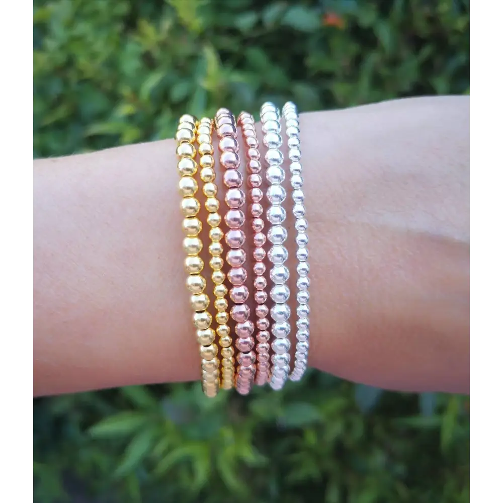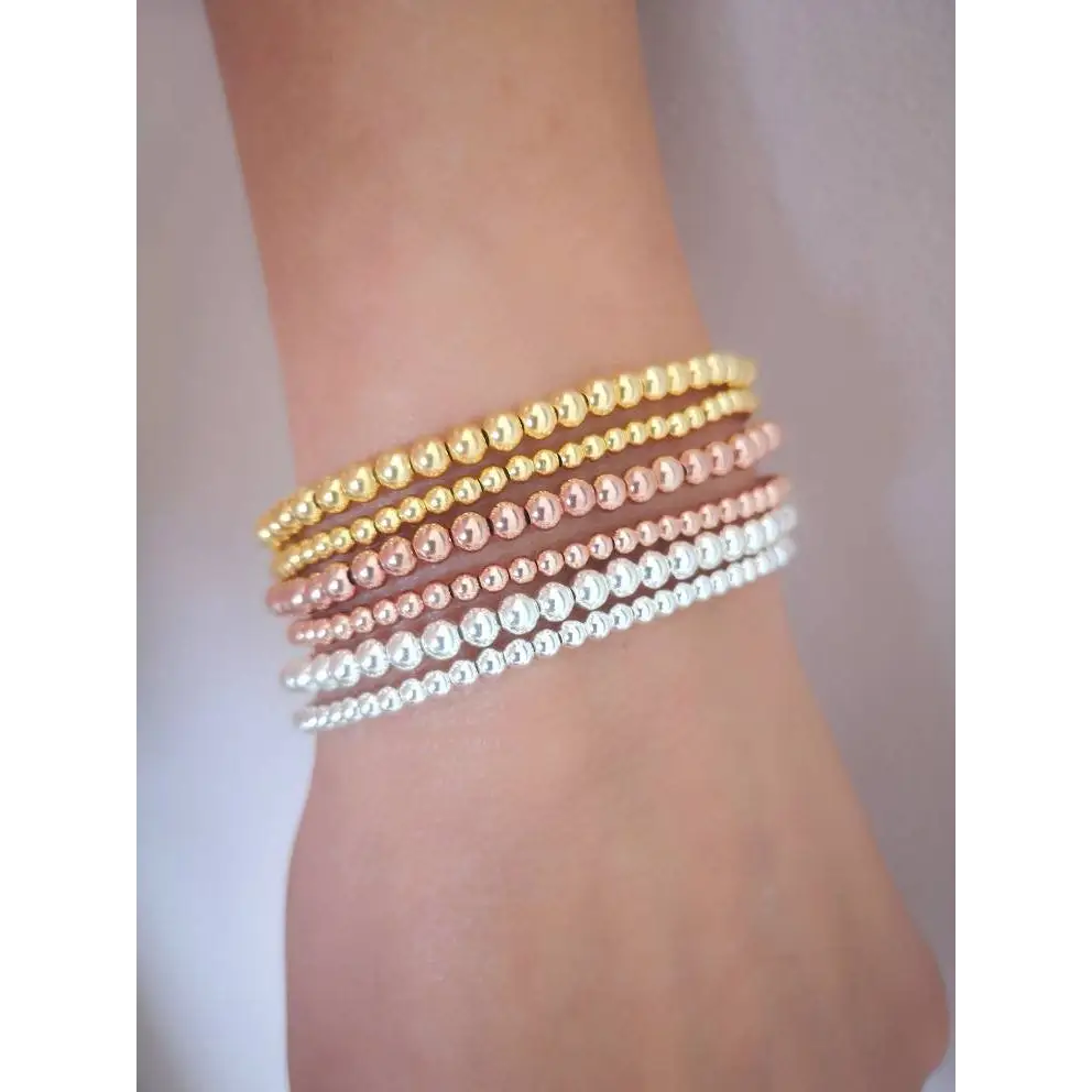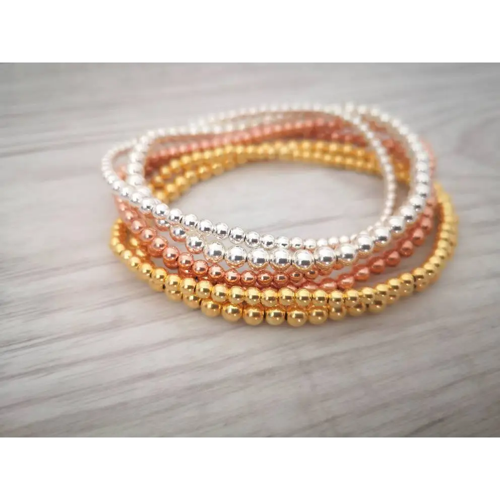 To order, simply select your preferred color and bead size from the drop-down menu. Create your perfect gold bracelet stack by mixing and matching finishes.
