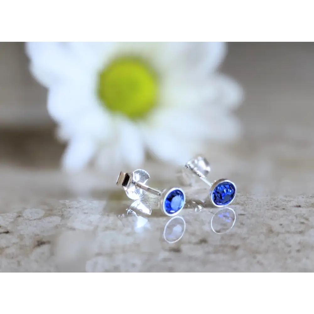Complementing the bracelet are our exquisite earrings. These sterling silver earrings showcase a brilliant 4mm Sapphire style crystal, capturing the light with every movement.