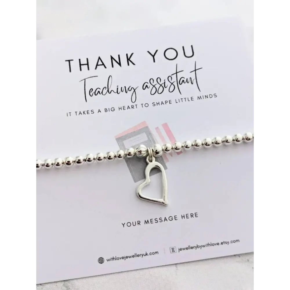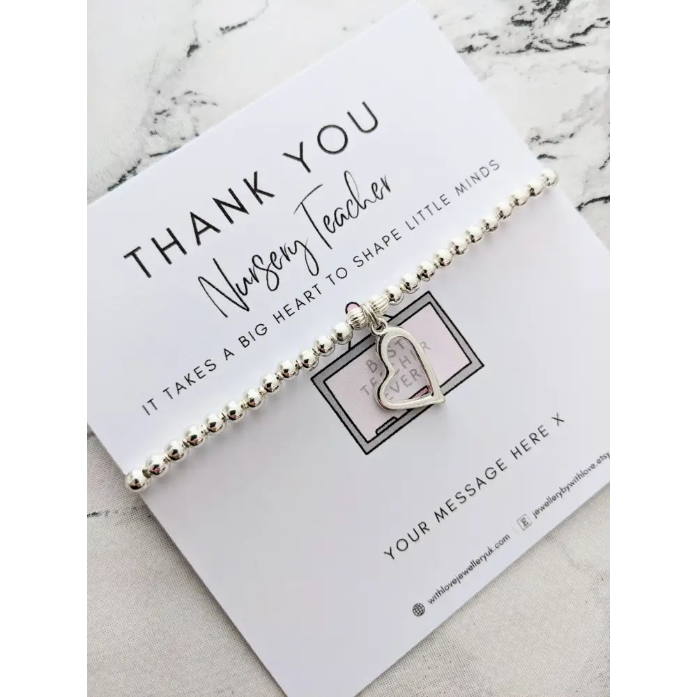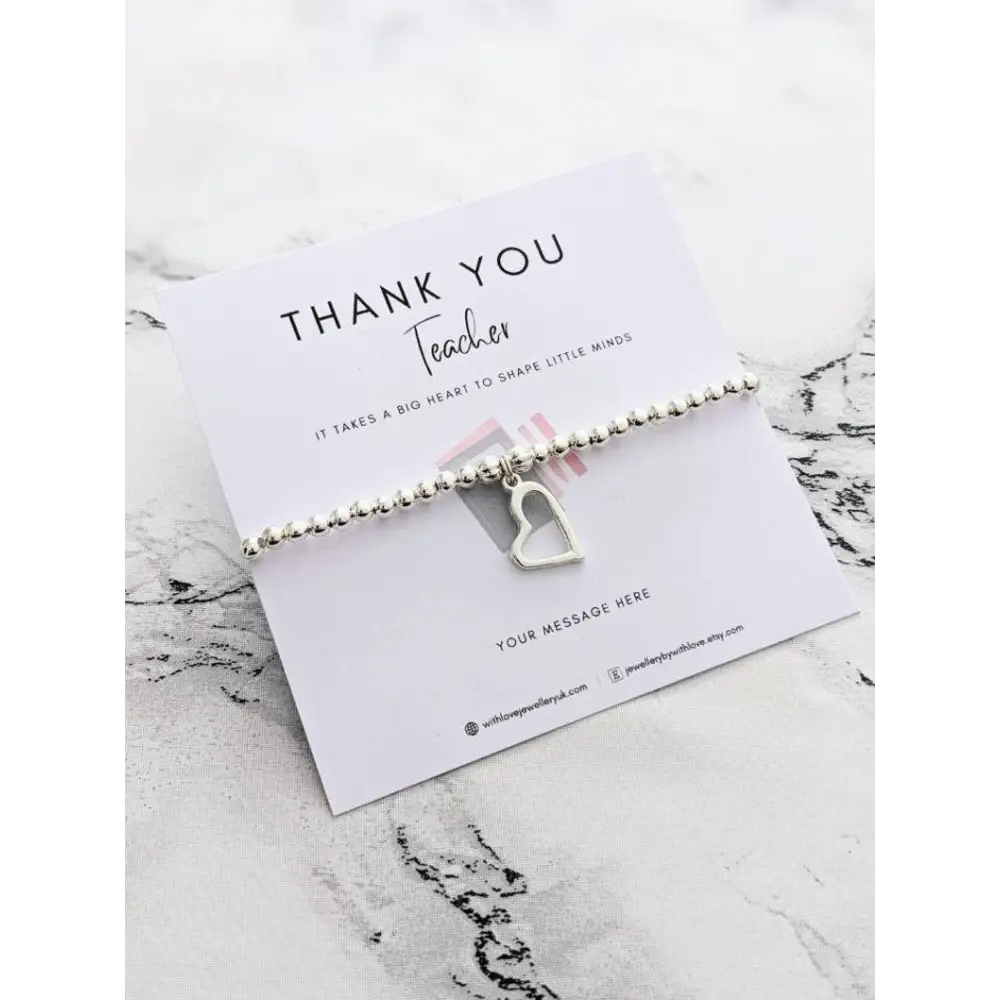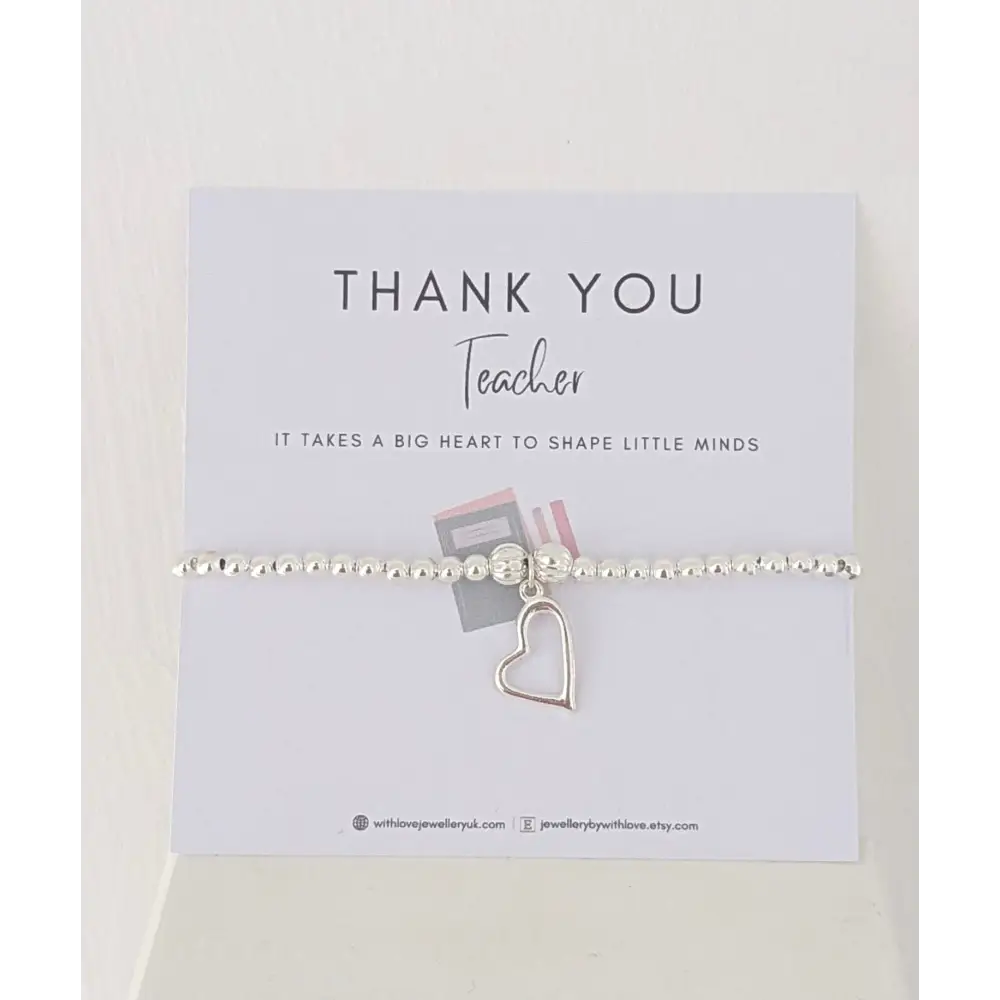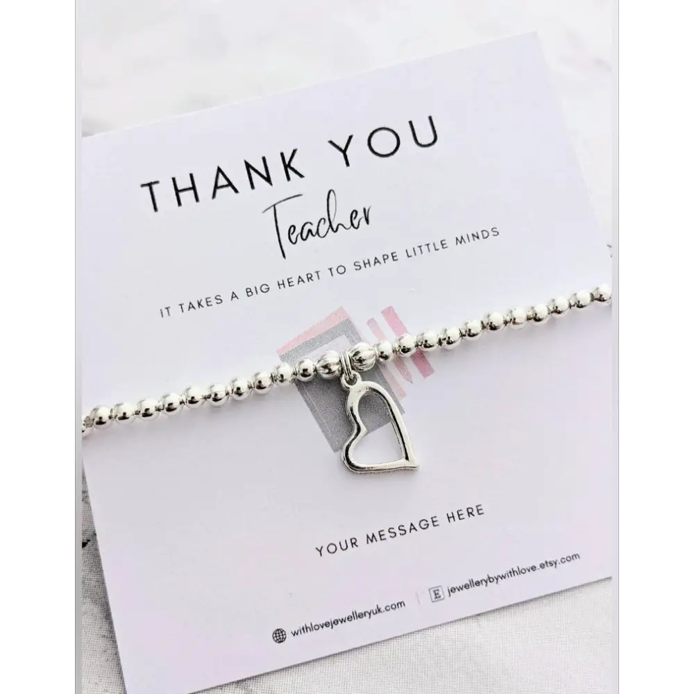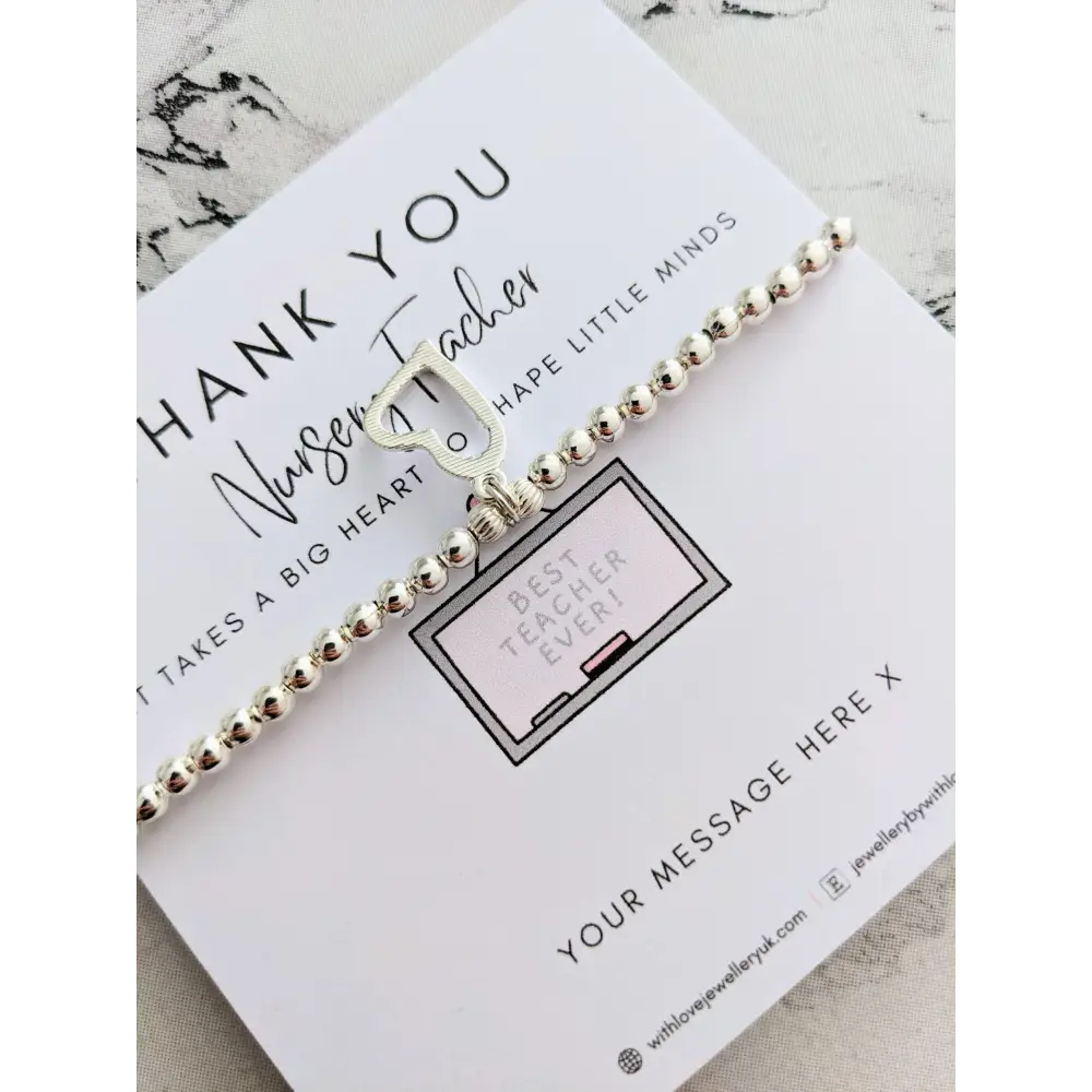 The perfect personalised Thank You Teacher Silver Beaded Bracelet gift!