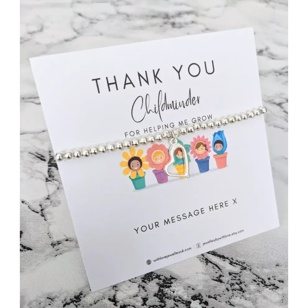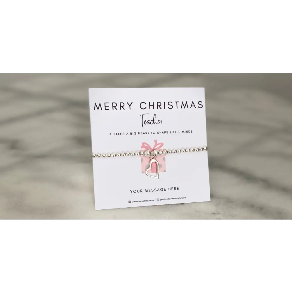Merry Christmas or Thank You Teacher/Nursery Teacher/Teaching Assistant/Childminder Silver Stretch Beaded Bracelet
