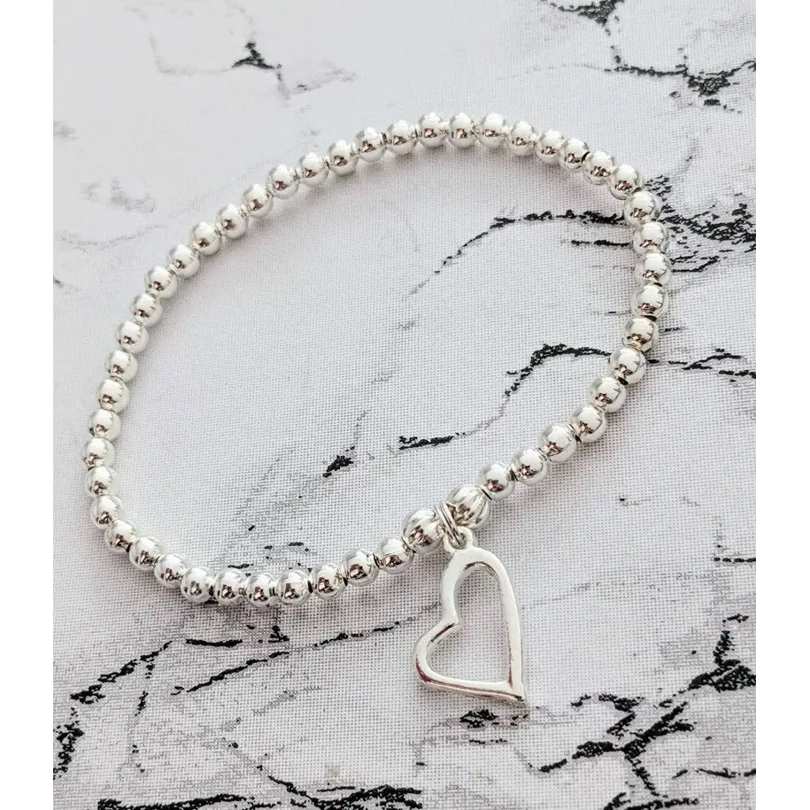This stretch bracelet is made using silver plated 4mm beads and a 20mm x 11mm silver plated heart. This bracelet is approximately 7 inches long. Smaller or larger sizes can be made on request, please add a note to your order.