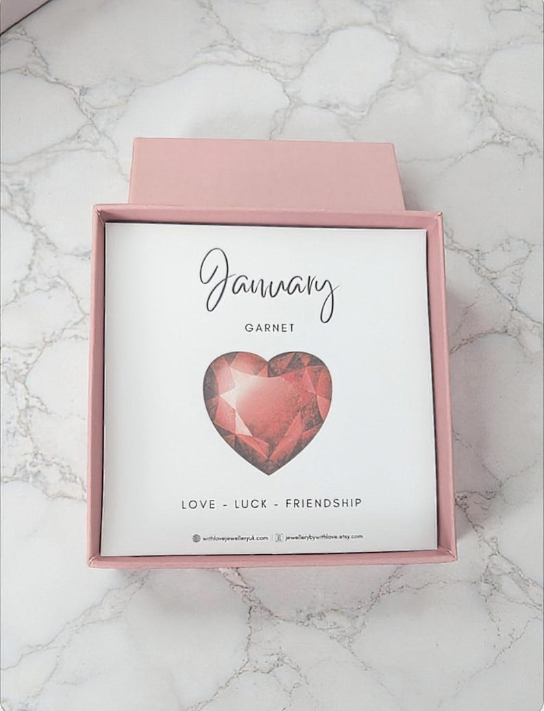 This bracelet makes a thoughtful personalised gift for her—perfect for a January birthday gift, anniversary, graduation, or bridesmaid jewellery. Every bracelet comes beautifully presented in a luxury gift box and displayed on a January birthstone gift card insert with your personalised message, making it completely ready to give.